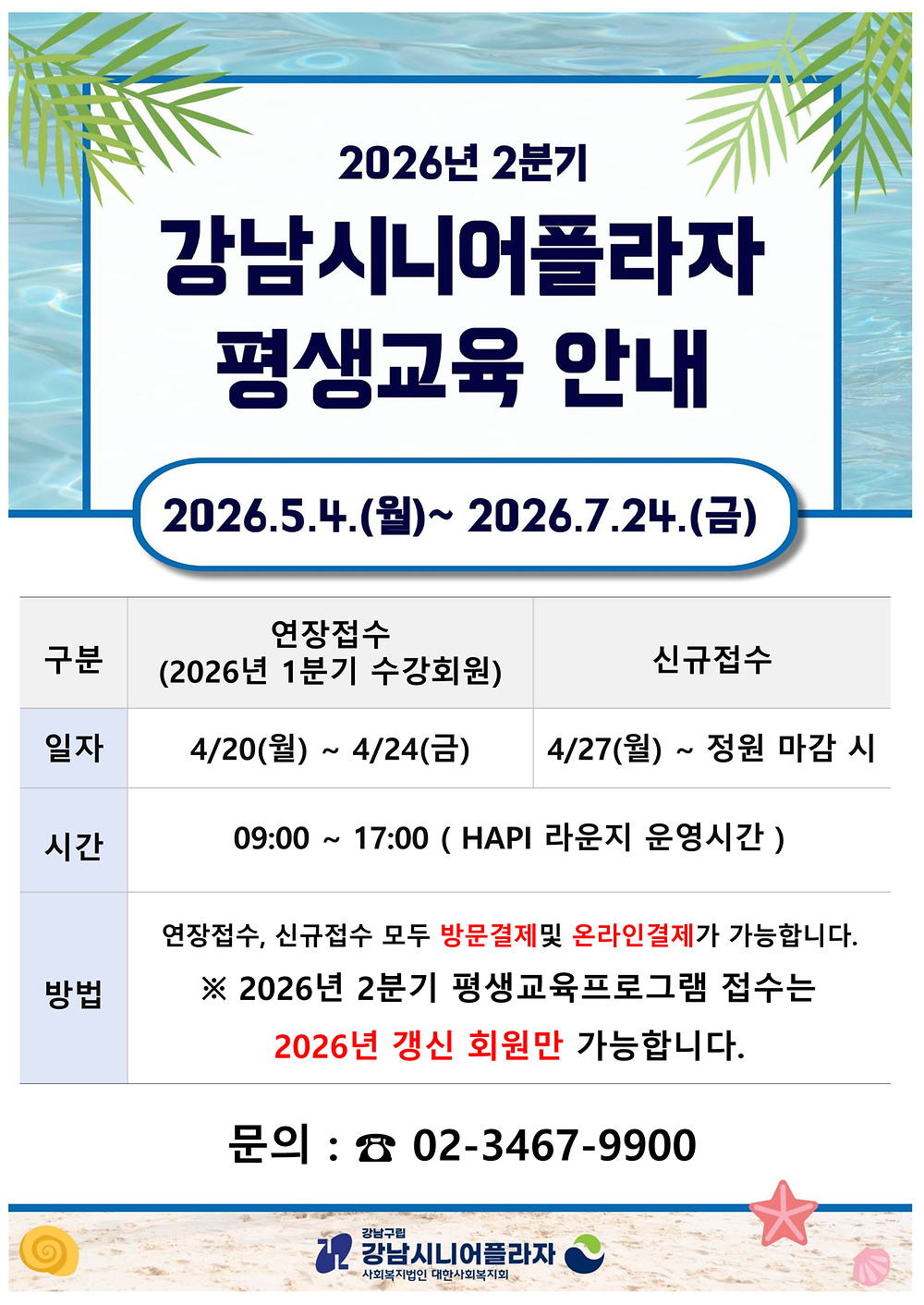- [평생교육] 강남시니어플라자 평생교육 프로그램 신규강사 공개채용 안내 2026-03-30