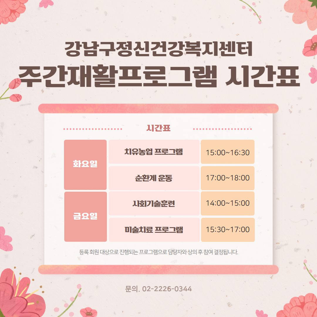 2024 주간 재활 프로그램 상반기 시간표🌸