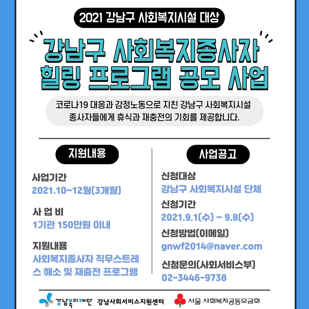 1) 사 업 명 : 2021년 강남구 사회복지 종사자 힐링 프로그램 공모