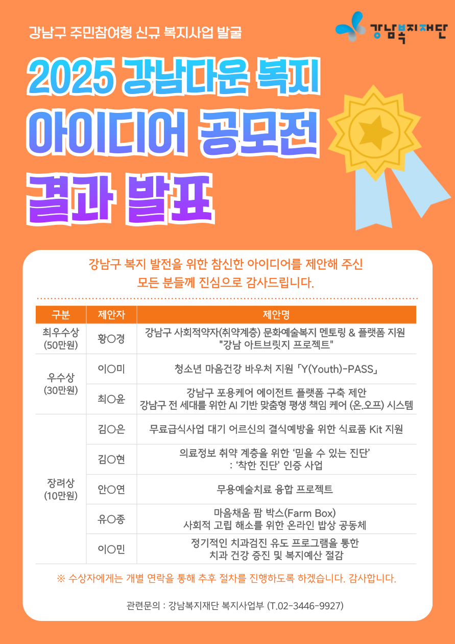 강남다운 복지 아이디어 공모전 결과 발표 소식입니다