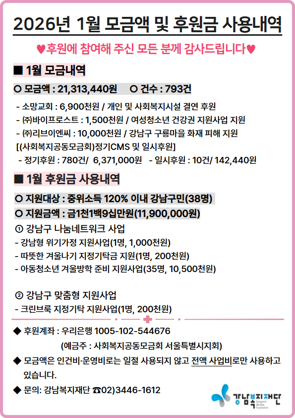 2026년 1월 모금 및 후원사용내역