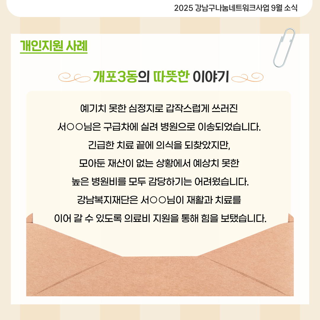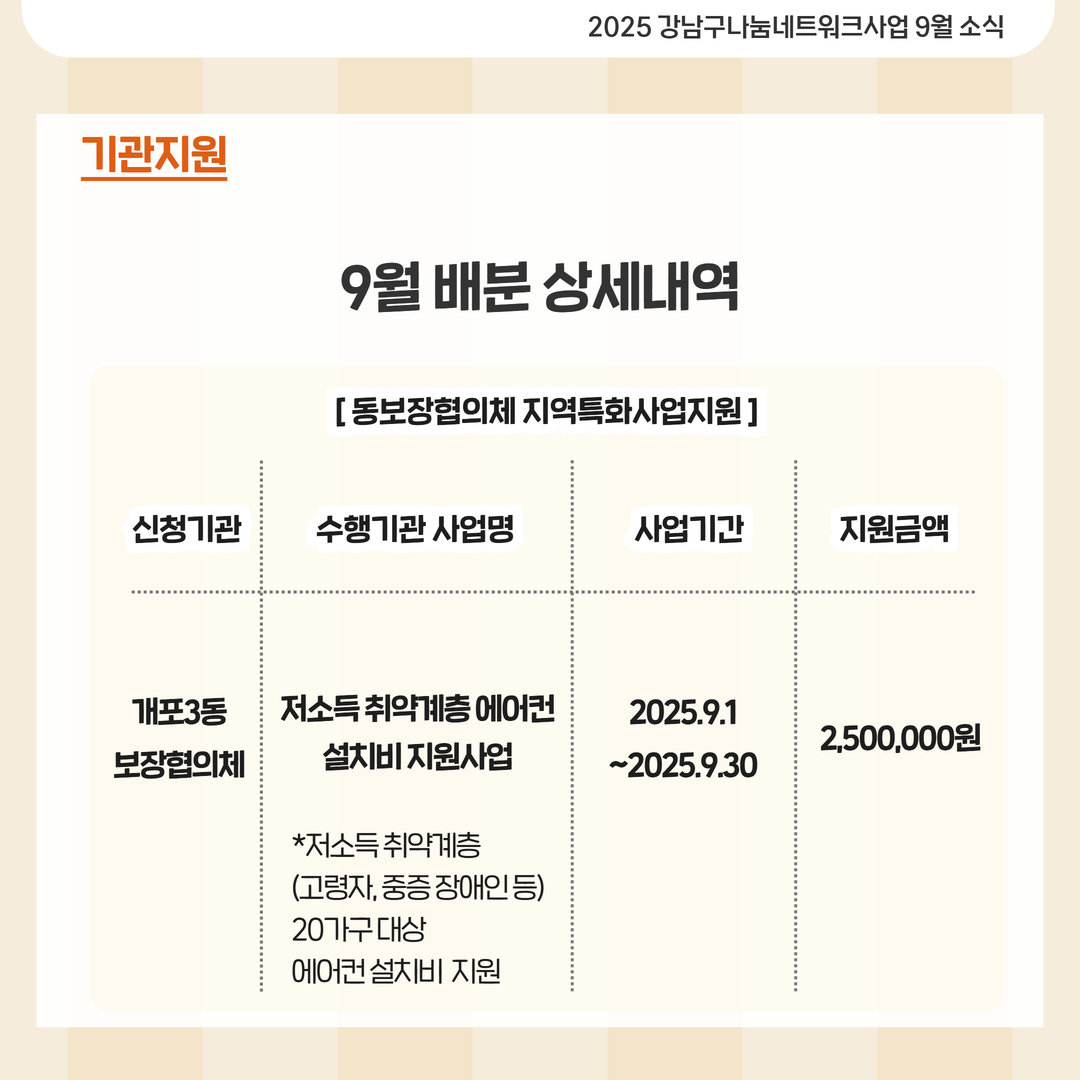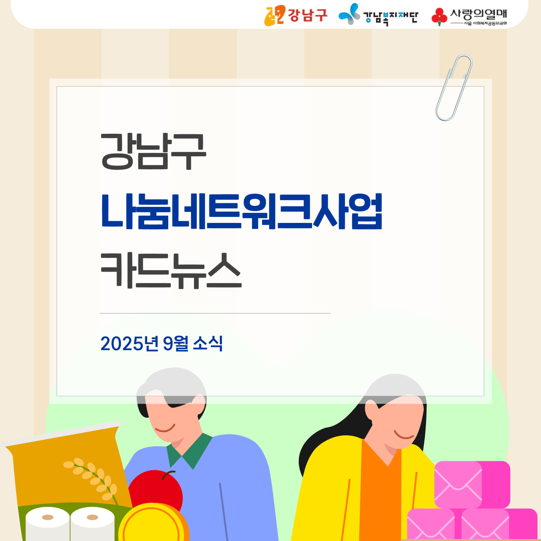 강남구 나눔네트워크 사업의 내용을 담은 2025년도 9월 사업 소식입니다!