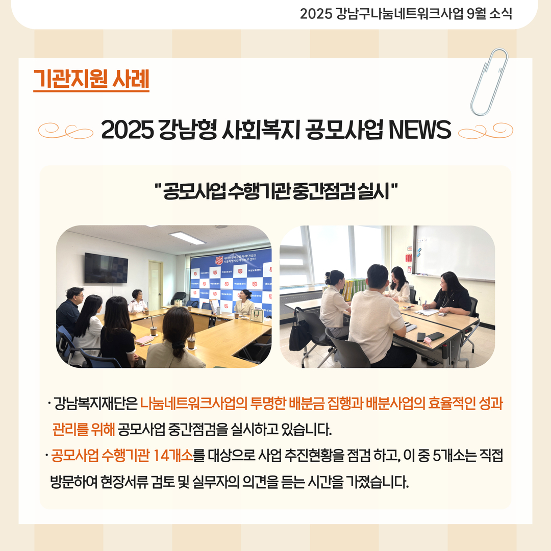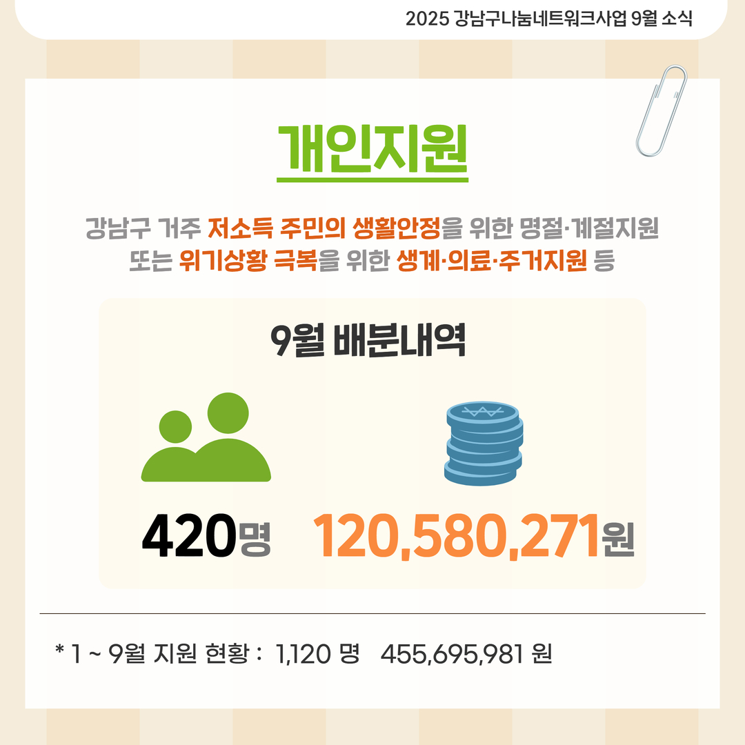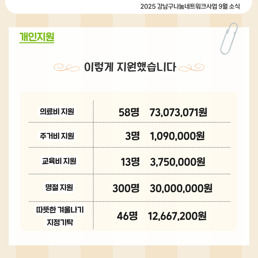 강남구 나눔네트워크 사업의 내용을 담은 2025년도 9월 사업 소식입니다!