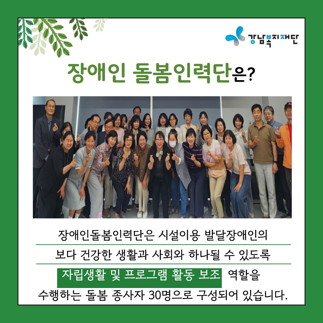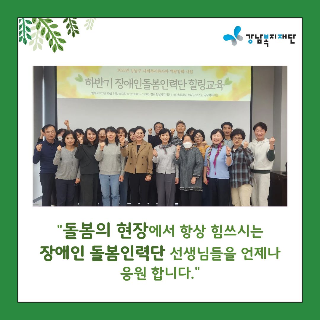 돌봄의 현장에서 항상 힘쓰시는 장애인 돌봄인력단 선생님들을 언제나 응원합니다!