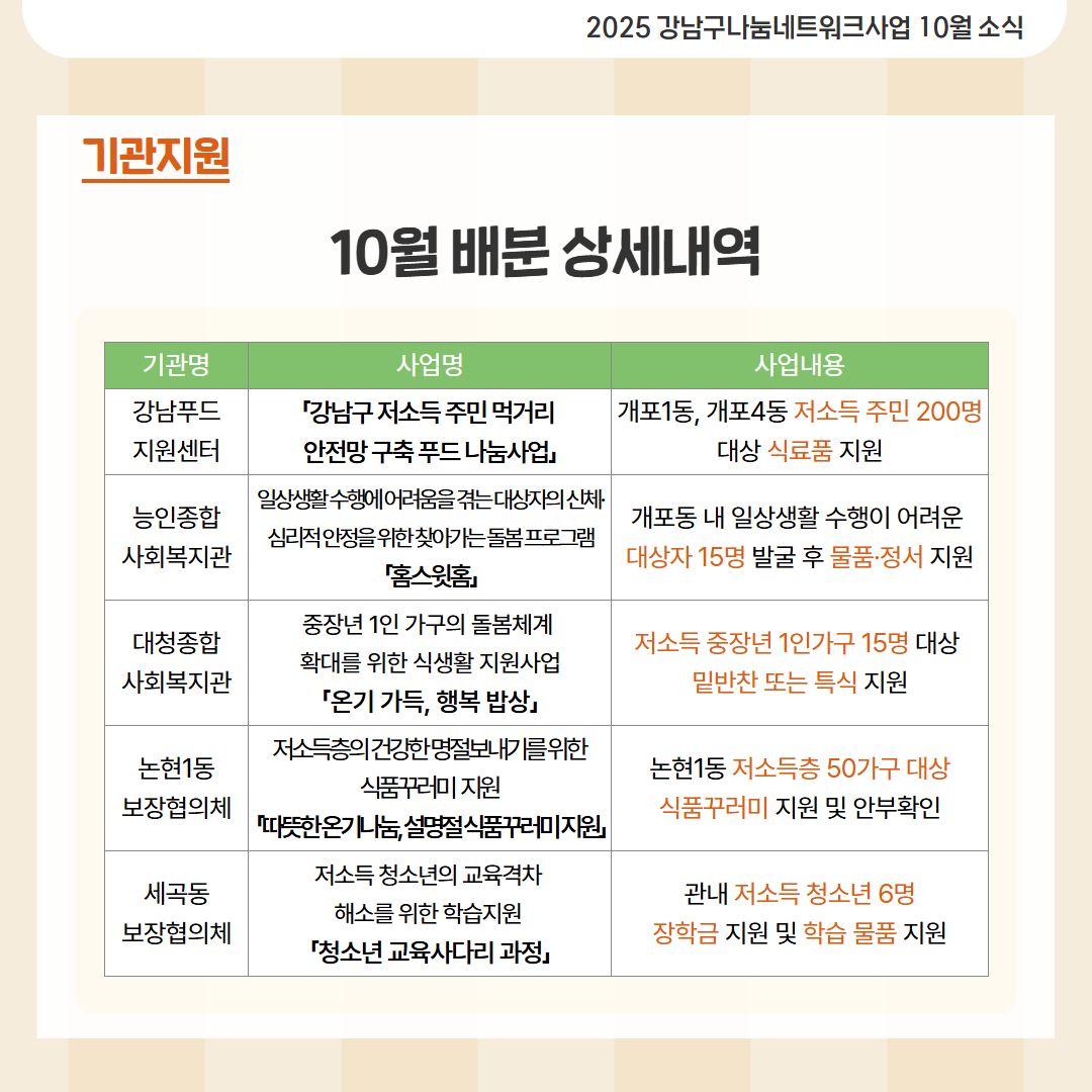2025년 강남구 나눔네트워크 사업 10월호 소식입니다.
