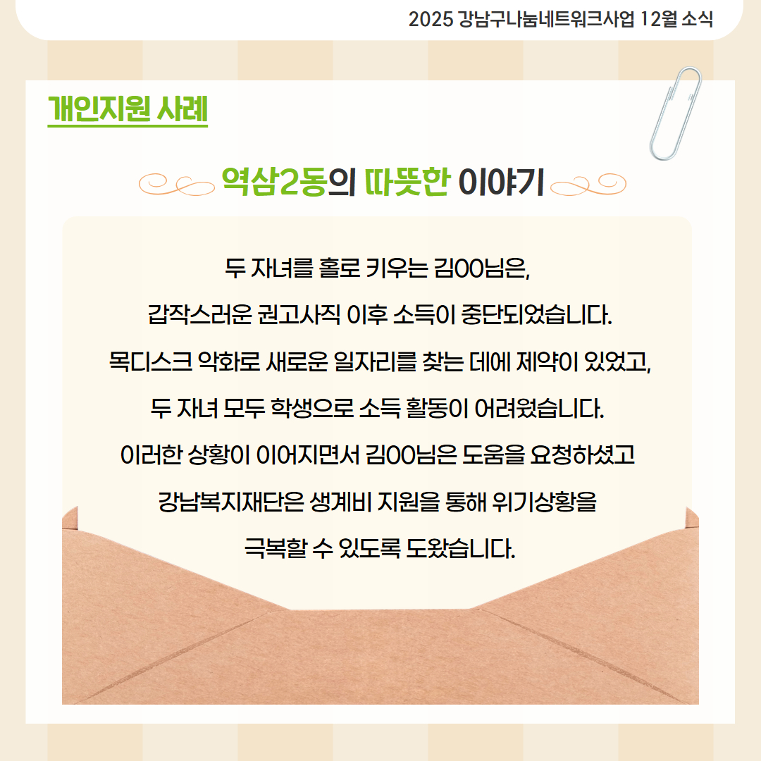 2025년 강남구 나눔네트워크 사업 12월호 소식입니다.