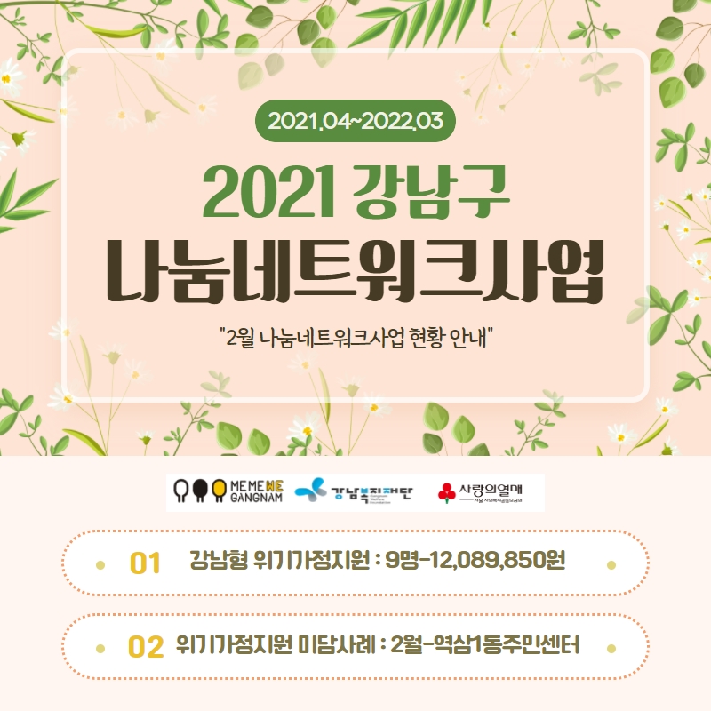 강남복지재단 2022년 2월 나눔네트워크사업 안내입니다.