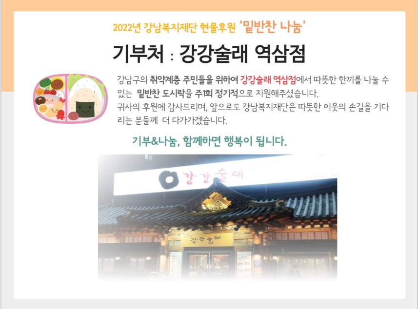 전한 강강술래 역삼점 강남구 취약계층을 위한 따뜻한 한끼 식사 후원