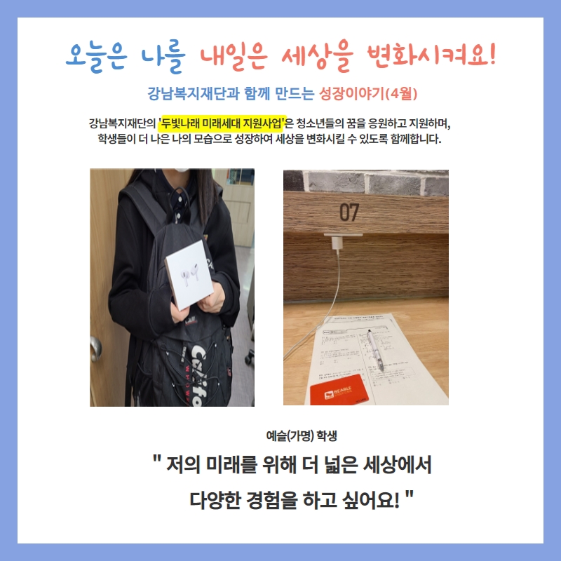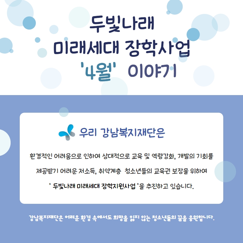 두빛나래 미래세대 장학지원 사업 4월 이야기입니다