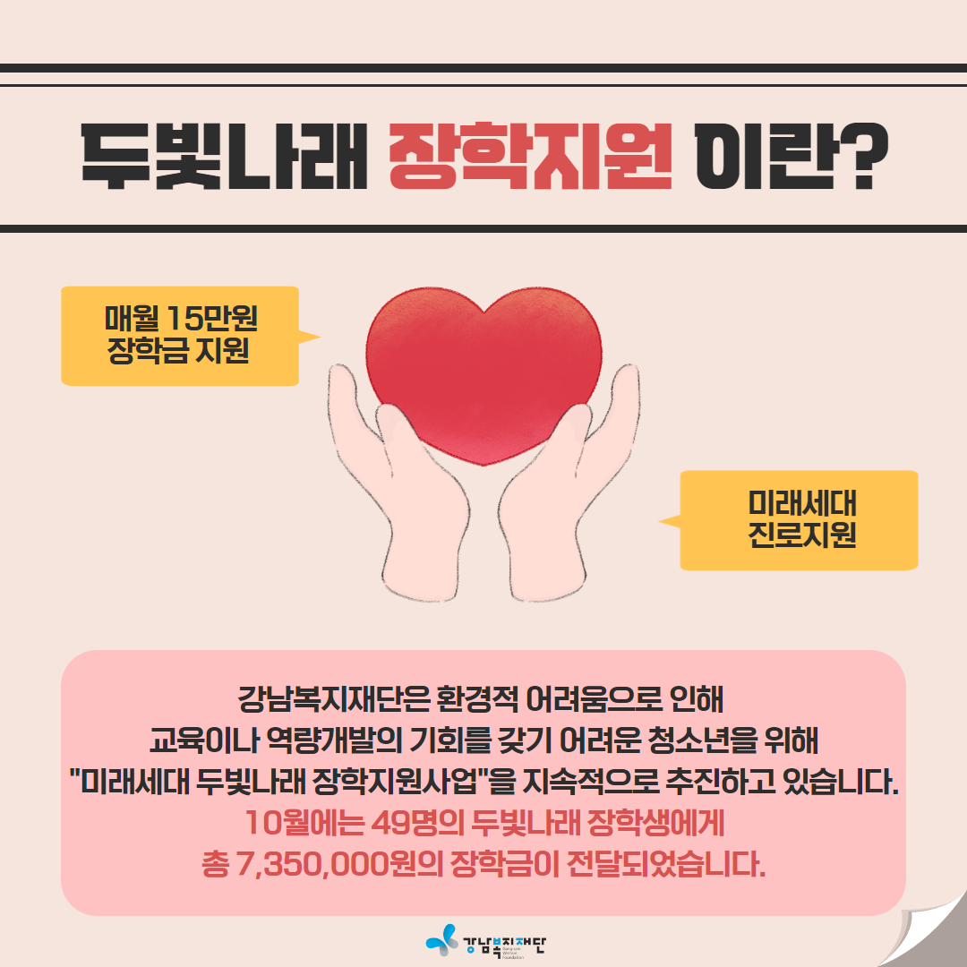 미래세대 두빛나래 장학사업 10월 이야기 입니다.