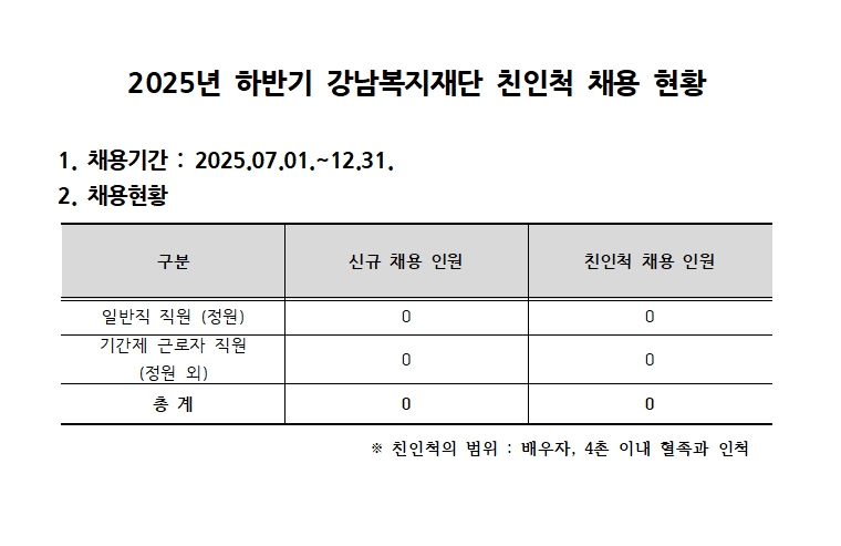 2025년 하반기 강남복지재단 친인척 채용현황