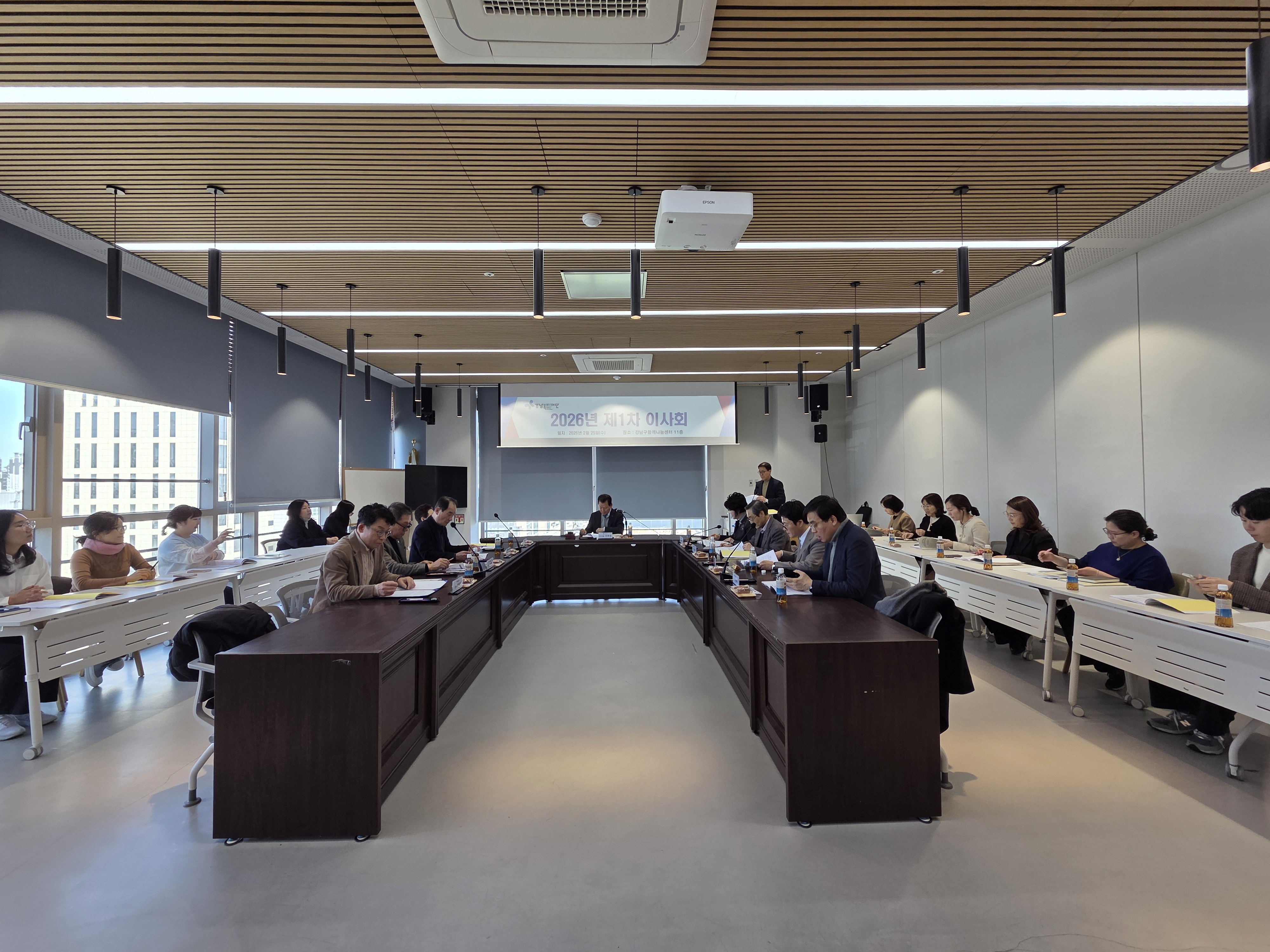 강남복지재단(이사장 이의신)은 2월 25일, 2026년 제1차 이사회를 개최하였습니다.
