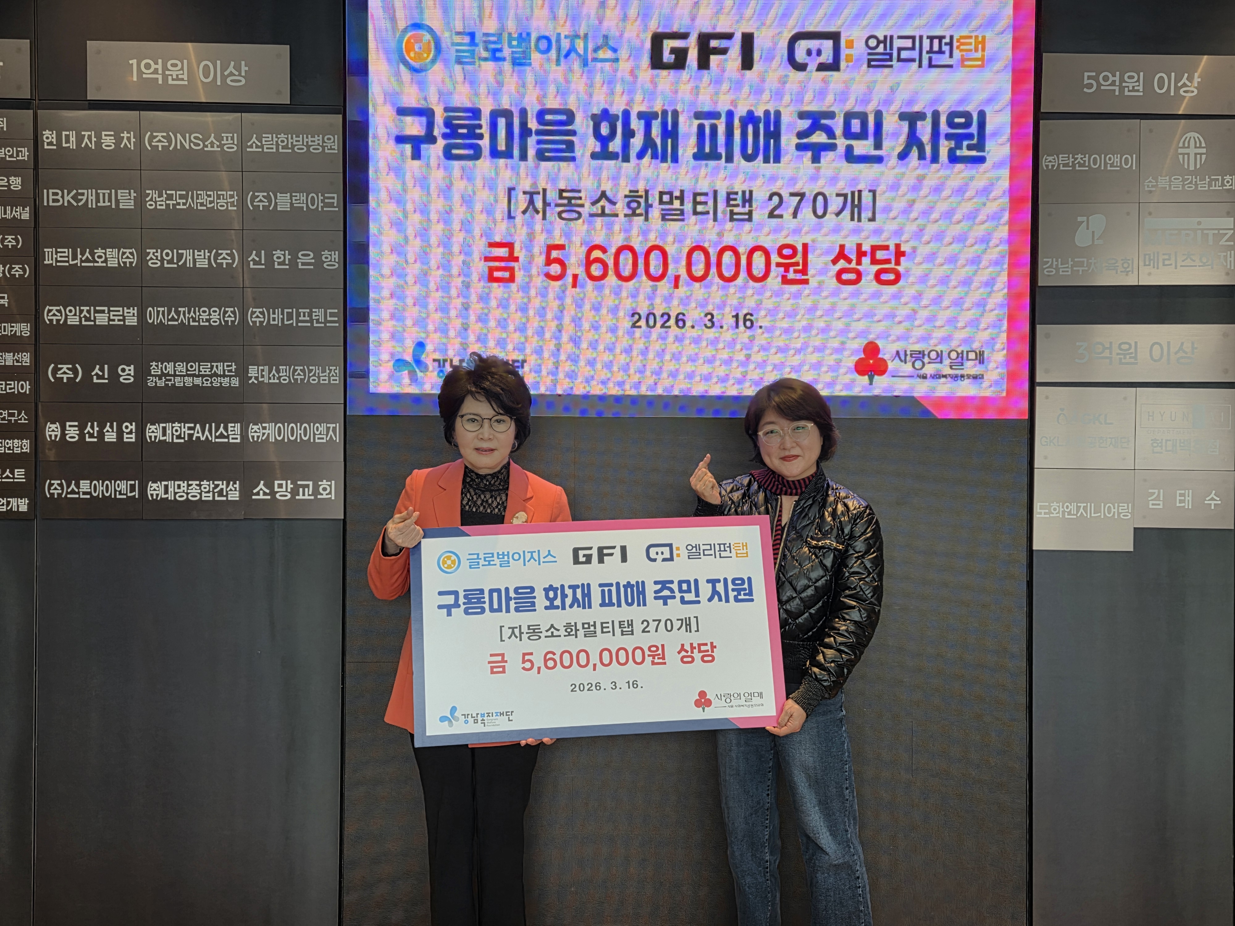 주식회사 지에프아이(엘리펀탭)에서 구룡마을 화재 피해 주민을 위해 자동소화멀티탭을 후원해주셨습니다.