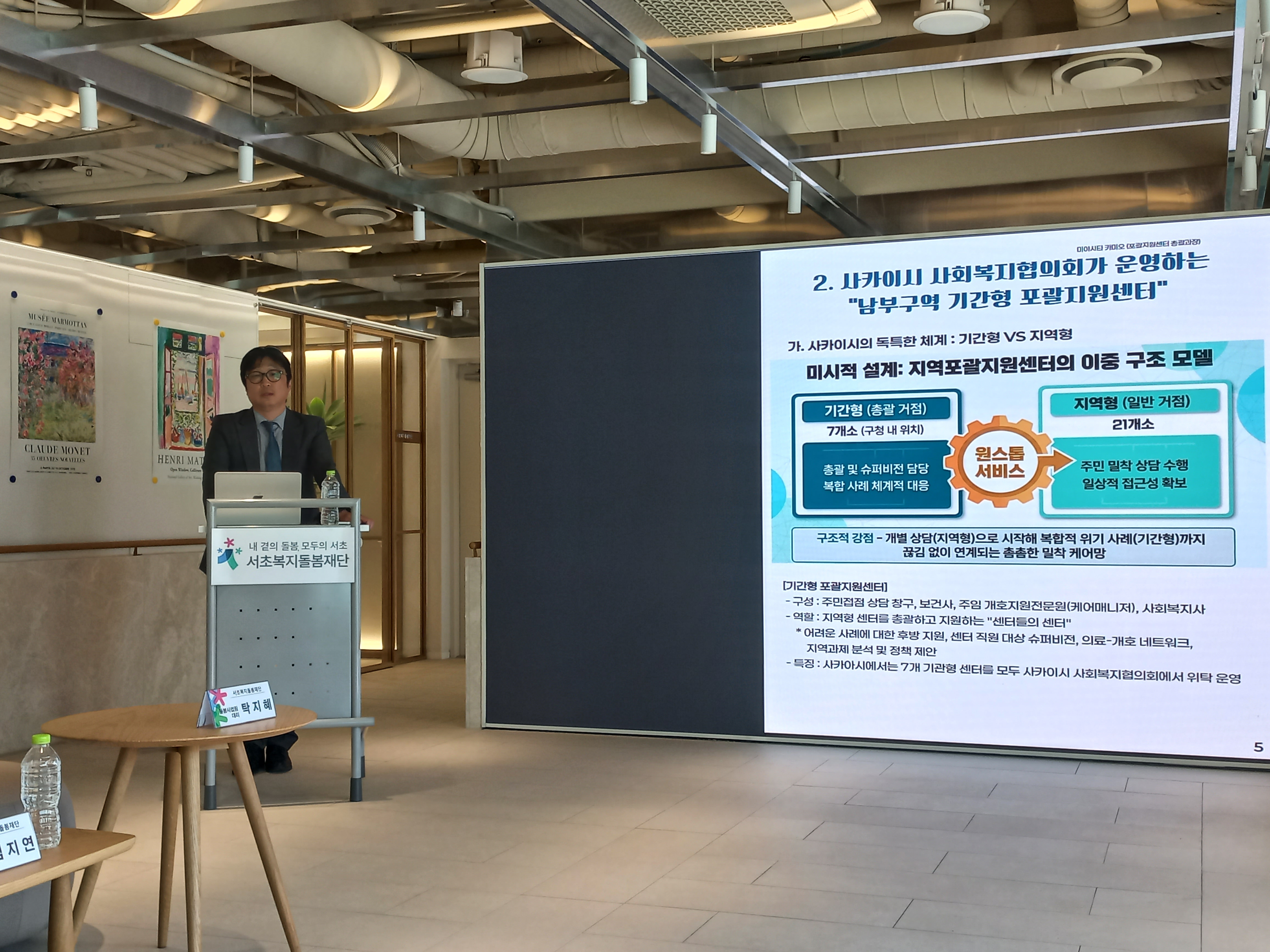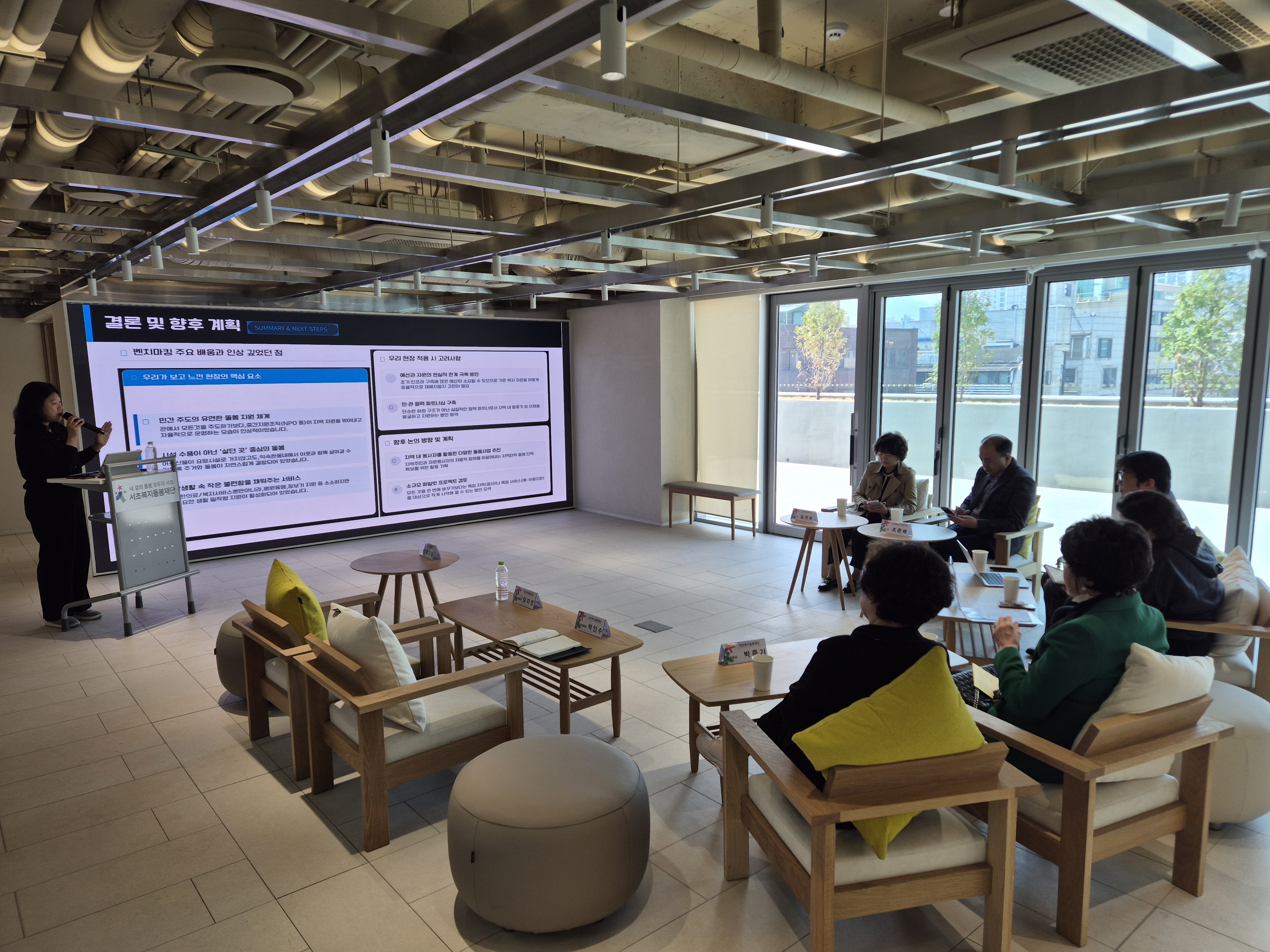 - 참 석 : 서초복지돌봄재단 박준기 대표이사, 강남복지재단 이재민 상임이사, 통합돌봄지원부 정원희 부장, 강남노인종합복지관 고영한 관장, 강남세움복지관 김귀자 관장, 강남종합사회복지관 조준배 관장