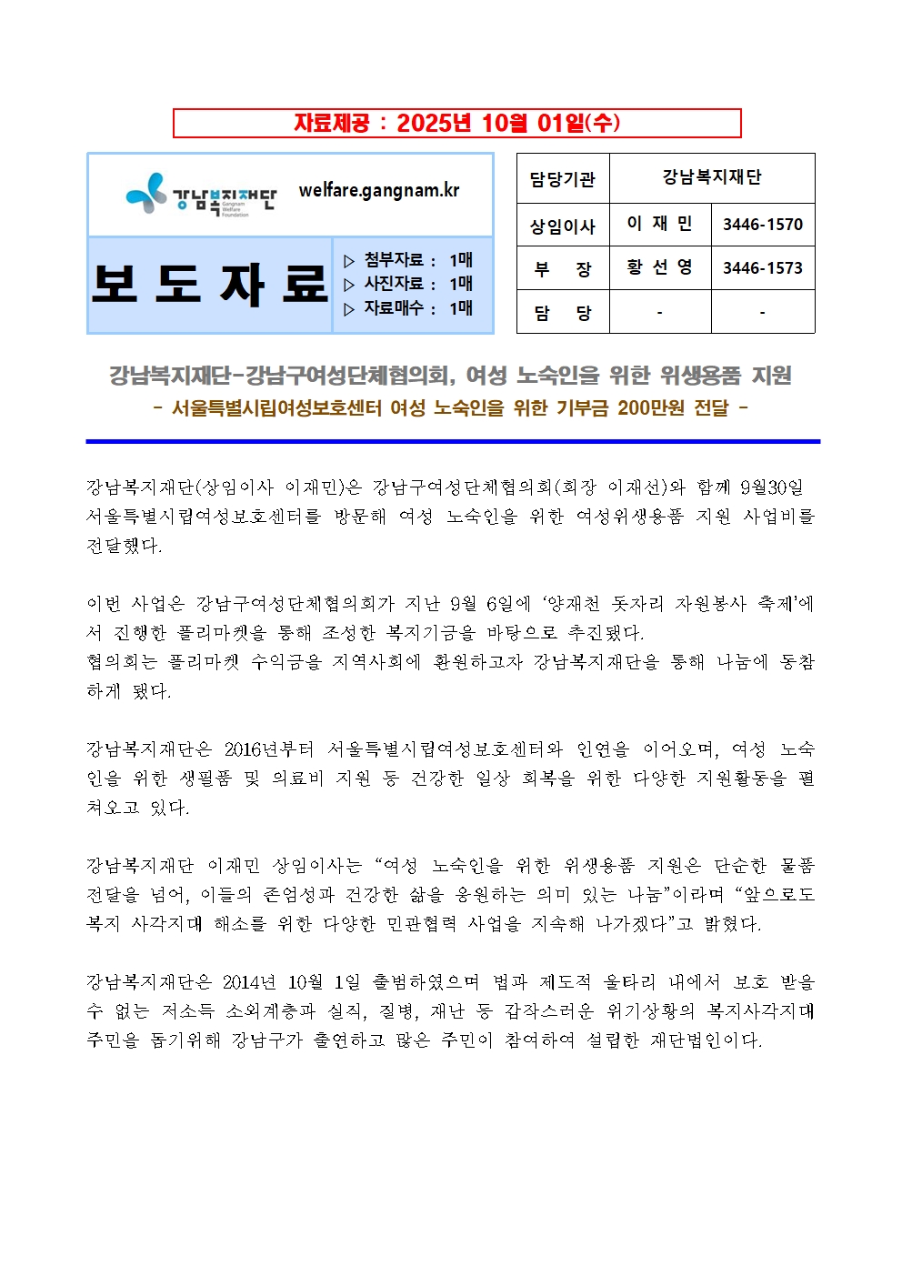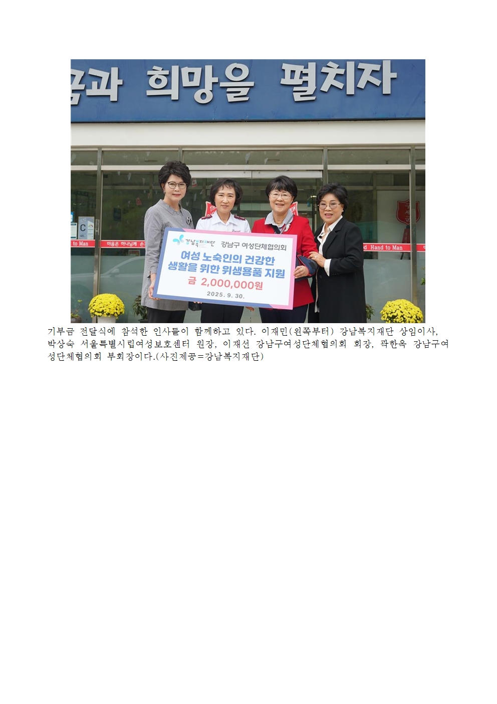 강남복지재단-강남구여성단체협의회, 여성 노숙인을 위한 위생용품 지원