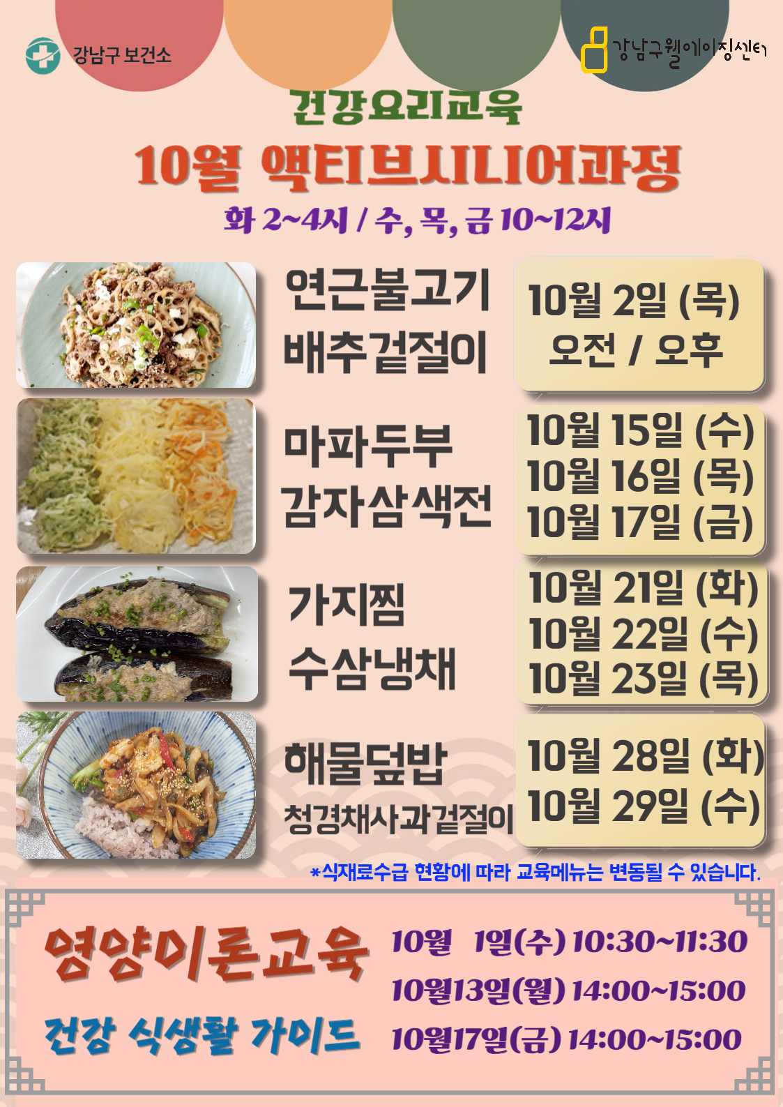 [액티브시니어과정] 10월 건강요리교육 프로그램 안내
