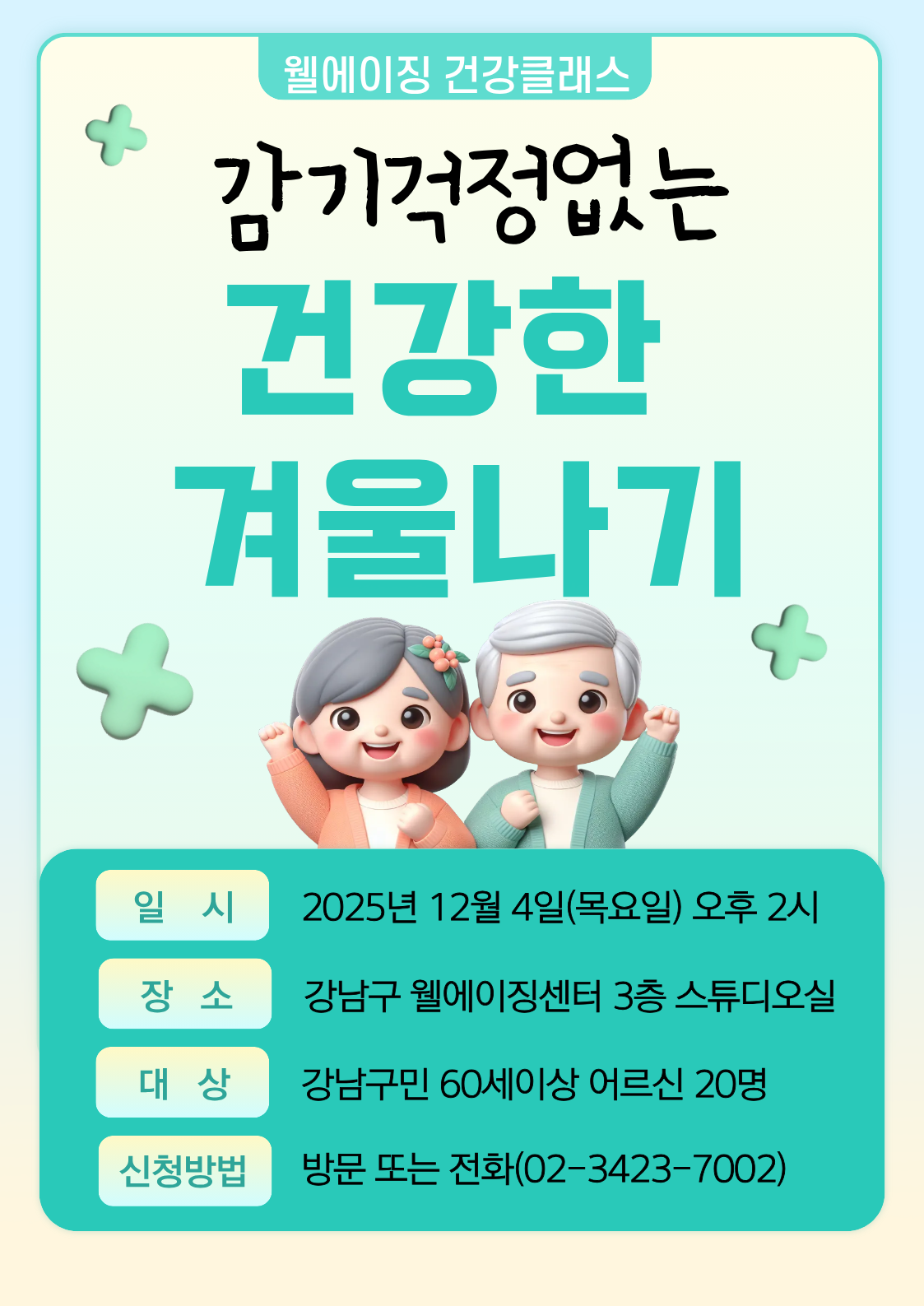 웰에이징센터 건강클래스 : 감기 걱정 없는 건강한 겨울나기(12월 4일)