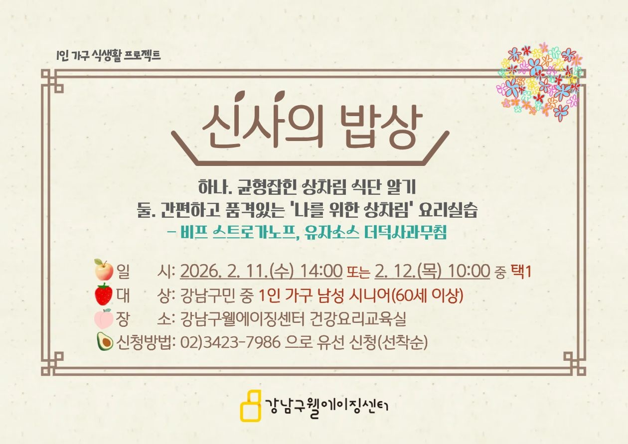 [1인가구 식생활 프로젝트] 신사의 밥상 / (접수마감)