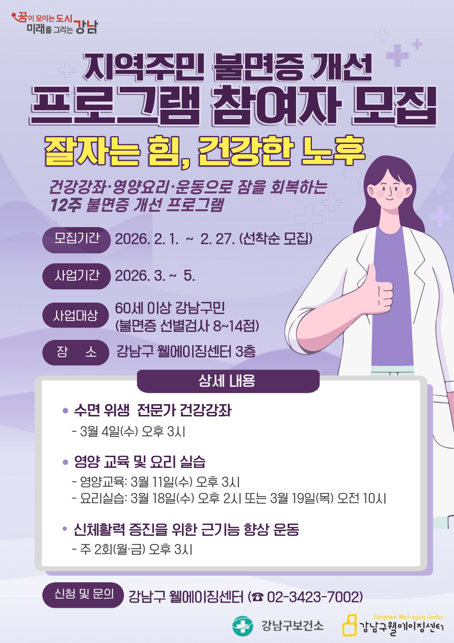 [전문가 건강특강] 지역주민 불면증 개선을 위한 건강특강:편안한 잠 건강한 노년(2026년 3월 4일(수) 오후3시 )