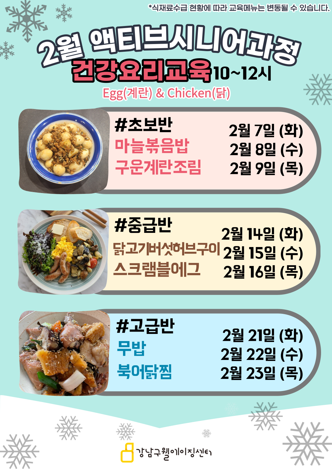[액티브시니어과정] 2월 건강요리교육 프로그램 안내