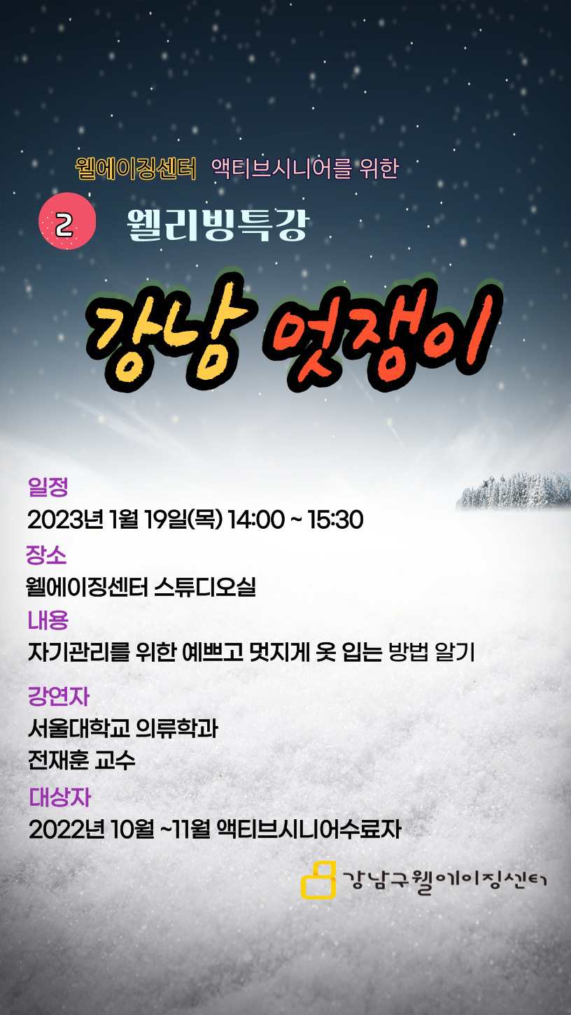 [웰리빙특강] 1월 교육 안내 (교육 주제: 강남 멋쟁이)