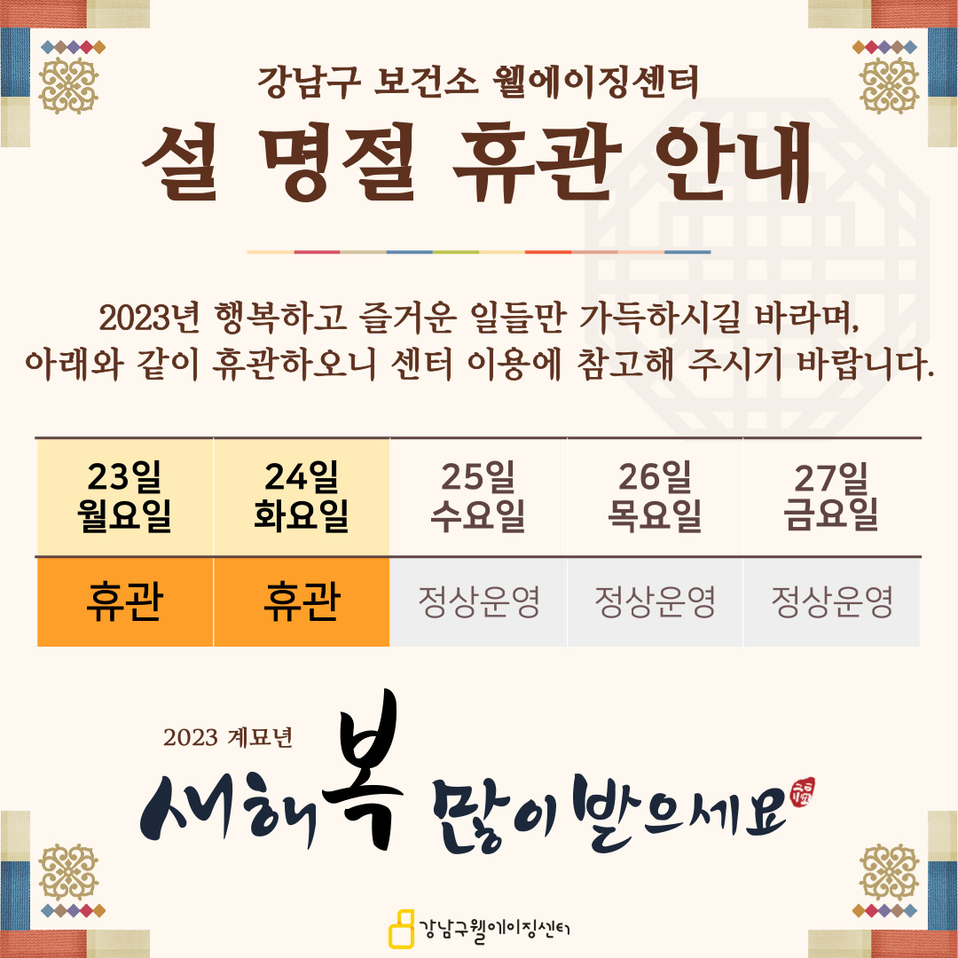 웰에이징센터 설 명절 휴관 안내