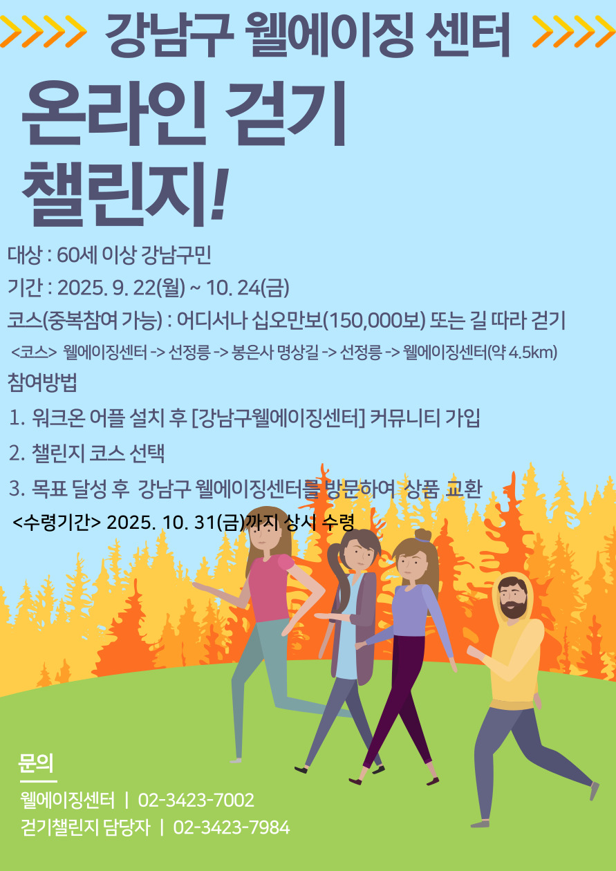 - 강남구 웰에이징센터 온라인 걷기 챌린지 참여 방법 2025-09-17