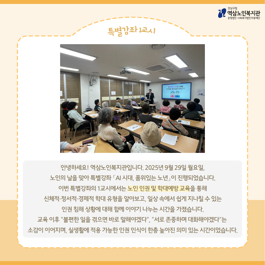 [2025년 노인의 날 기념 특별강좌] AI 시대, 품위있는 노년