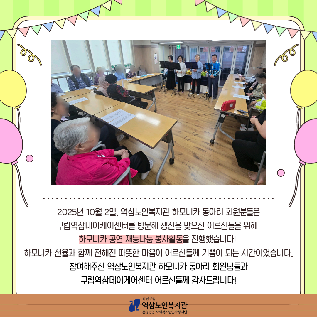 역삼실버스타(하모니카 동아리) 재능나눔 공연 봉사활동