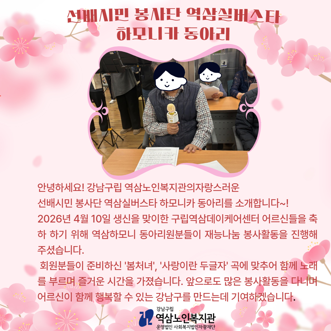 [역삼실버스타] 2026년 4월 역삼노인복지관 하모니카 동아리 봉사활동 진행