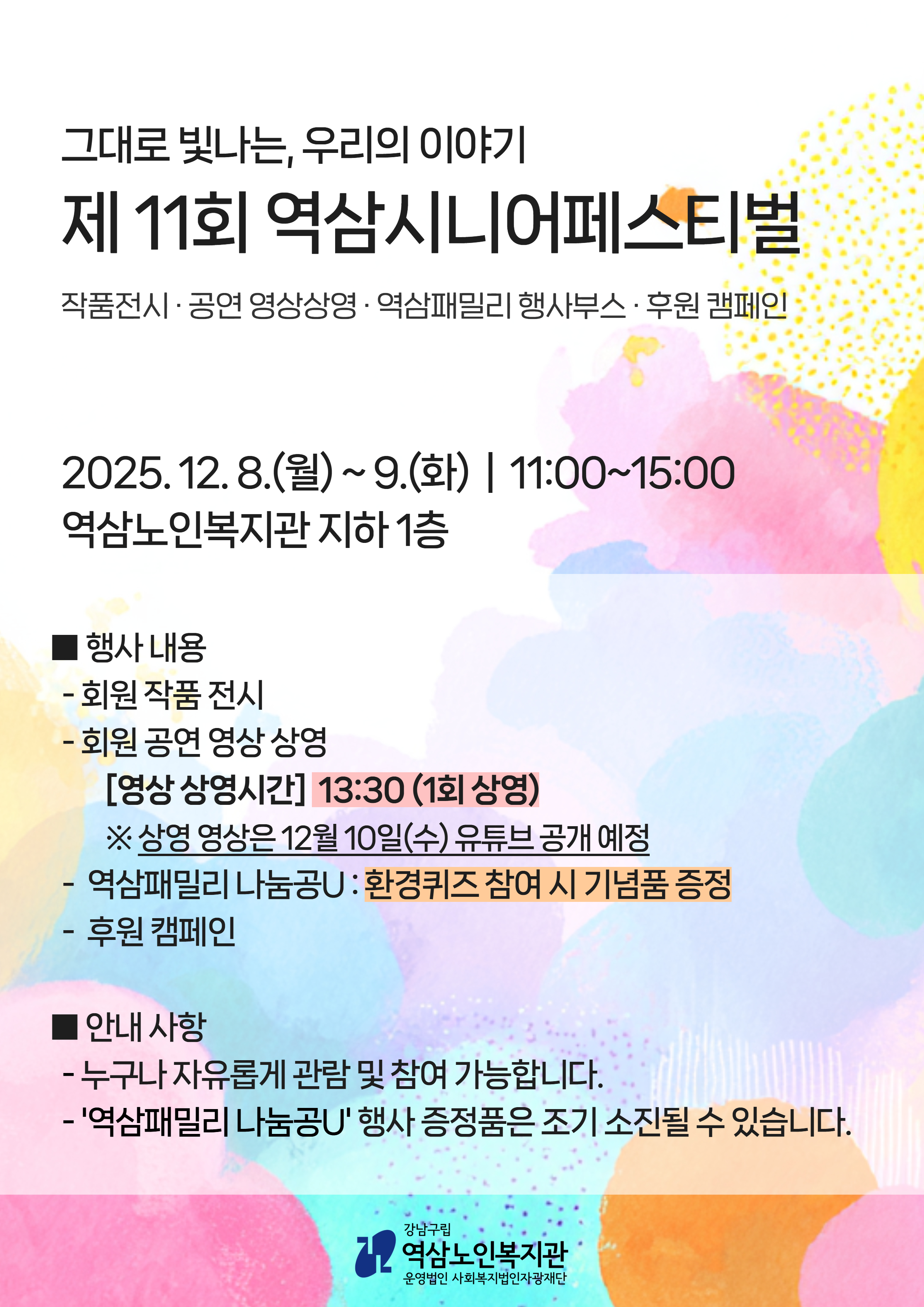 - 다시, 청춘! 제10회 역삼시니어페스티벌 2025-01-02